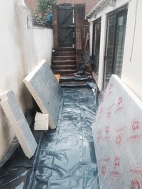 Boundary wall damp proofed ready for structural stud work