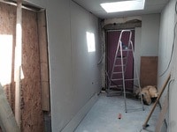 Doorway knocked through to the surgery and plasterboarded